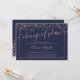 Invitation Rose gold bleu marine écriture reportée changement
