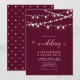 Célébrez votre journée spéciale avec cet élégant modèle faire-part de mariage moderne. Ce design présente de belles lumières à cordes et typographie avec le thème de couleur or rose et bordeaux. Les invitations et les fournitures de fête correspondants sont disponibles dans ma boutique BaraBomdesign.