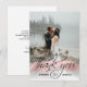 Dites merci à vos invités avec ces jolies cartes postales uniques et personnalisées. Faux doré rose pailleté avec un joli mot de remerciement écrit en calligraphie. Personnalisez-les en ajoutant les noms des mariés et la date du mariage ou de l'anniversaire de mariage avec une photo / image. Le verso de la carte a un message optionnel