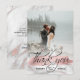Remerciez vos invités avec ces cartes postales uniques et originales. Faux rose gold brush stroke avec un joli mot de remerciement en écriture. Fond en marbre gris clair avec feuille de rose gold. Personnalisez-les en ajoutant les noms des mariés et la date du mariage ou de l'anniversaire avec photo / image. Le verso de la carte a un message optionnel