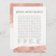 Un modèle de brosse à feuille d'or rose simulé. Personnalisez le texte personnalisé ci-dessus. Vous pouvez trouver d'autres éléments de coordination dans notre collection "Modern Rose Gold Brushstroke Fête des mariées". **REMARQUE : LA TOUCHE DE RÉPONSE SUR LE DOS DE LA CARTE EST SUPPRIMÉE. Si vous préférez ne pas avoir de clé de réponse à la recherche de mots, vous pouvez la supprimer ci-dessus ou en cliquant sur "Customiser plus loin". Vous pouvez également choisir d'acheter une carte avec la clé de réponse et laisser les autres sans - c'est à vous de décider !