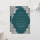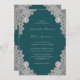 Cet élégant or rose et les invitations de mariage turquoises avec dentelle fleurie d'or rose sur un arrière - plan turquoise sont parfaits pour inviter vos invités à votre mariage rustique d'or turquoise et rose.