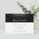 Cette carte de réception de mariage élégante présente des fioritures en rose gold sur une bande noire en haut. La couleur noire peut être changée en n'importe quelle couleur disponible.