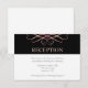 Cette carte de réception de mariage élégante présente des fioritures en rose gold sur une bande noire en haut. La couleur noire peut être changée en n'importe quelle couleur disponible.