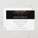 Cette carte de réception de mariage élégante présente des fioritures en rose gold sur une bande noire en haut. La couleur noire peut être changée en n'importe quelle couleur disponible.