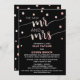 Cette carte d'invitation de réception de mariage en or rose et noir est parfaite pour un mariage intime sophistiqué ou en soirée. Le design présente une belle calligraphie moderne en faux or rose et des confettis sur fond noir pour un look audacieux et glamour. Les cartes de RSVP sont vendues séparément.