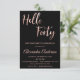 Faux Rose Gold Foil Bonjour 40 quarantième anniversaire Invitation de fête. La Gold Foil Rose et la Black 40th Birthday Party Invitation est parfaite pour une fête de quarante ans moderne.