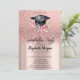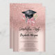 Invitation Rose Gold Glitter Floral Grad Cap Bow Graduation
