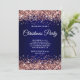 Invitation Rose Gold Glitter Navy Blue Ombre Christmas Party