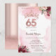 Invitation Rose Gold Glitter Roses Crown 65th Birthday Party
