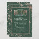 Elégant, chic et moderne imitation rose d'or contour et de peintures éclaboussures sur course verte, invitations de fête d'anniversaire. Ce design classique et sophistiqué est parfait pour une personne d'anniversaire classe, chic et branchée. Personnalisez avec votre propre message sur le devant et customisez le monogramme sur le dos. Tous les modèles d'impression photo