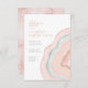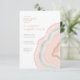 Tous les designs mariages ne sont pas égaux. L'agencement asymétrique des pièces de cet ensemble mariage frappant prouve que ce n'est pas une mauvaise chose ! Des bandes de couleur ondulées dans des tons contrastés de couleur or rose et de bleu turquoise doux avec un centre de cristal scintillant forment un accent géode/agate sur la plupart des pièces de l'ensemble. L'invitation "Dîner de répétition" mariage présentée ici comprend les détails ci-dessus ainsi qu'un modèle pour ajouter les détails de l'événement et les informations RSVP pour vos invités. L'inverse a un arrière - plan abstrait de coordination qui rappelle la pierre veinée de parties scintillant. Recherchez ID647 pour voir toutes les pièces de coordination de cet ensemble.