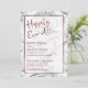 Invitez vos invités à célébrer votre récent mariage avec cette carte de faire-part moderne et élégante en or rose sur fond de marbre. Dans le design que j'ai utilisé, une police de caractères script épaisse et décontractée crée une superposition de typographie graphique avec la mention "Happily Ever After" (Pour toujours heureux), embellie d'un effet de faux or rose. Vos détails sont rendus dans une police sans-serif grasse et complémentaire. Remplissez les espaces du modèle avec vos informations pour personnaliser le design. Toutes les couches ont été laissées déverrouillées afin que vous puissiez cliquer pour personnaliser davantage et repositionner le texte ou même changer la taille ou les polices. Le fond a été recouvert d'un graphique en marbre gris et blanc riche, sur lequel a été superposé un rectangle blanc opaque bordé de doubles contours en or rose. N'hésitez pas à me contacter pour