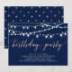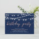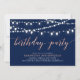 Célébrez votre jour spécial avec ce modèle d'invitation de fête d'anniversaire moderne et élégant. Ce design présente de belles guirlandes lumineuses avec un thème de couleurs rose gold et navy.
