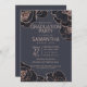 Invitation Rose Gold Navy Blue Flowers Graduation Party