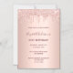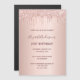Une invitation magnétique moderne, élégante et glamour pour une fête d'anniversaire féminine et girly pour 21 ans. Un fond métallisé de faux rose gold avec un effet de dégoulinade de paillettes rose gold élégant. Le nom est écrit avec un style de lettrage à la main de couleur rose gold foncé moderne. Des modèles pour les détails de votre fête. Parfait comme rappel de sauvegarde de la date pour vos invités !