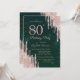 Invitation Rose Gold Parties scintillant Drips Vert 80e anniv