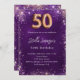 Célébrez un 50e anniversaire spécial avec cette invitation époustouflante, parfaite pour une fête élégante. Le fond violet foncé présente une belle texture inégale, rehaussée par des faux scintillements rose doré et doré pour un éclat scintillant. Le nom est écrit dans un script délicat et manuscrit, ajoutant une touche personnalisée et sophistiquée. Personnalisez l'invitation en ajoutant le nom et tous les détails importants de la fête. Ce design luxueux donne le ton à une célébration inoubliable.