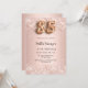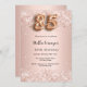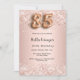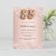 Une invitation moderne, élégante et glamour pour une fête d'anniversaire de 85 ans. Un fond rose gold avec confettis. Le nom est écrit avec un style de lettrage à la main. Personnalisez et ajoutez les détails de votre fête. Le numéro 85 est écrit avec une police de caractères de style ballon, script.