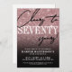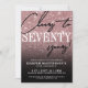 Celebrate in style with this modern elegant Seventy Birthday Party Invitation, perfect for marking a milestone in a chic, timeless way. The design features a luxurious rose gold glitter background that fades into a black gradient at the bottom, creating a glamorous, sophisticated look. A large “SEVENTY” appears at the top in a sleek serif font, with black and white script fonts above and below reading “Cheers To Seventy Years!” for a stylish, celebratory feel.