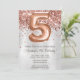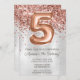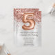 Rose Gold Silver 5th Birthday Party Invitation et or rose élégant moderne 5th anniversaire invitation pour une fille de 5 ans avec écriture de script moderne et des ballons de papier amusant.