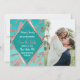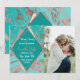 Élégant, chic et moderne avec une ambiance rétro, faux contour de forme géométrique de diamant en rose gold imprimé sur fond sarcelle vert et marbre rose gold avec des découpes en diamant mauve et rose blush, carte de Save-the-Date de mariage. Ce design classique et sophistiqué est parfait pour le couple qui se marie, tendance et stylé. Personnalisez avec votre propre message sur le devant ainsi qu'un monogramme personnalisé au dos. Conception d'impression photo personnalisable.