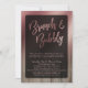 L'arrière - plan recouvert d'une image qui mêle une surface lisse et rose à l'ombre d'or qui se fonde dans un mur de grange en bois rustique. Sur un rectangle translucide arrondi, j'ai placé tous les détails. "Brunch & Bubbly" est un graphisme rendu avec un script d'écriture moderne, orné d'un effet or rose lisse. Ajoutez vos données personnelles aux champs modèle. // 105 //