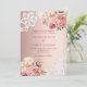 Pour un mariage élégant et romantique. Un fond dégradé d'or rose décoré de fleurs d'or rose et rose, de roses et de dentelle. Personnalisez et ajoutez vos noms et détails.