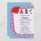Obtention du diplôme tellement très mignonne de jardin d'enfants comportant un casquette d'obtention du diplôme avec les ABC sur un arrière - plan bleu et rose. Personnalisez avec votre information de partie et vous êtes tous placez pour aller ! En assortissant merci des notes, autocollants et l'affranchissement disponible dans notre magasin chez www.celebrateitinvites.com ©Dotted des conceptions de marguerite