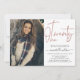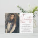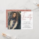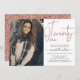 Invitation photo moderne de 21e anniversaire avec script de typographie "vingt un" en lettres d'or rose, photo unique et détails de fête dans des lettres branchées.