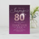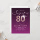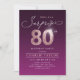 Modern Shhh, c'est une surprise de 80e anniversaire invitation de fête comprend script élégant et faux rose or parties scintillant numéro 80 et vos détails de fête sur velours rouge violet couleur arrière - plan, simple et élégant, grande surprise d'invitation d'anniversaire adulte pour les hommes et les femmes.