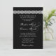 Ce design contemporain aux accents de dentelle sur un arrière - plan noir et une belle rose qui se déplie fait une élégante invitation au mariage. Il est actuellement présenté sur un papier métallique doré qui donne à votre invitation un éclat et un éclat chauds. Vous pouvez expérimenter avec différents types de papier pour obtenir l'apparence que vous voulez. Si vous voulez une finition brillante (qui s'applique uniquement au côté avant de votre invitation) choisissez le lin, les papiers de base ou les papiers métalliques. Si vous voulez une finition mat, choisissez le poinçonné, le feutre ou le recyclé. Cette invitation est accompagnée d'une enveloppe A7.