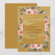 Cette conception présente un riche fond ochre qui donne un ton chaud et sombre pour un événement automnal. Des roses élégantes couleur rose poussiéreux sont associées au bleu marine profond et au feuillage vert sauge pour créer un arrangement botanique luxuriant et artistique. Le style pictural des éléments floraux ajoute une touche vintage à l'esthétique globale. Un mélange de tons de miel chaud et d'accents froids fournit une palette de couleurs sophistiquée pour une cérémonie rustique en plein air.