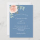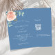 Un arrière - plan bleu poussiéreux. Décoré d'or rose et de fleurs rose rousse, de fleurs roses et de feuilles d'eucalyptus vert couleur eau, sprigs, de la verdure et des sprigs faux or. Personnalisez et ajoutez vos noms et les détails du mariage. Retour : ajoutez l'URL de votre site Web mariage au code QR pour plus de détails et/ou RSVP.