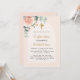 or rose, arrière - plan en arc de cercle, décoré d'un rose, végétation d'eucalyptus et d'une croix d'or. Personnalisez et un nom et des détails de la cérémonie. Lettres noires et dorées. Retour : arrière - plan rose d'or.
