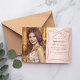 Arrière - plan rose à dégradé d'or, décoré d'un arc et d'un cadre dessinés à la main. Personnalisez et ajoutez une photo, un nom et des détails de la fête.