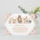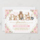 Invitation Rose or Floral Bois Animaux Fille Baby shower