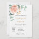 Un arrière - plan blanc chic. Décoré d'or rose et de fleurs roses rousses, de fleurs roses et de feuilles d'eucalyptus vert aquarellés, de sprigs, de verdure et d'une fausse feuille d'or. Personnalisez et ajoutez vos noms et les détails du mariage. Lettres noires et dorées. Retour : ajoutez l'URL de votre site Web mariage au code QR pour plus de détails et/ou RSVP.