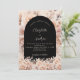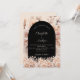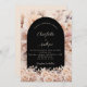 Une invitation moderne, design et romantique à une mariage. Un cadre en arc de cercle noir, décoré de doux dorés rose clairs, de fleurs roses et crème. Personnalisez et ajoutez vos noms et les détails.
