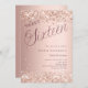 Une invitation Sweet 16 moderne. arrière - plan en or rose et le mot Seize écrit avec de grandes lettres. Décoré de faux parties scintillant, brille. Personnalisez et ajoutez un nom et des détails du parti.