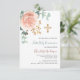Floraux d'or rose et rose rousse, végétation d'eucalyptus et croix d'or. Personnalisez et ajoutez un nom et des détails.