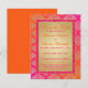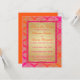 Cette carte "save the date" de mariage inspirée du Sari vibrant de l'est de l'Inde, dans des nuances de rose chaud, de fuchsia et d'orange, présente un motif damassé doré avec une bordure scintillante rose faussement (IMPRIMEE, pas réelle). Les couleurs riches en font un choix parfait pour un mariage ethnique, un mariage musulman ou un mariage indien de l'est. ****VEUILLEZ NOTER qu'aucun des éléments de cette invitation n'est en relief ou en gaufrage. Tout est imprimé à plat. Cette invitation conviendrait parfaitement pour une cérémonie de mariage indien, hindou, sanskrit ou musulman au printemps, en été, en automne ou en hiver, une fête de fiançailles, un anniversaire ou une autre fête de mariage. De plus, si vous redimensionnez l'invitation, ou si vous changez les polices, ou la taille de la police, certains éléments de conception et/ou de texte peuvent être coupés. Tout sera imprimé comme vous le voyez sur votre écran. Je ne verrai pas votre invitation, et Zazzle ne corrigera RIEN (fautes de frappe, alignement, etc.). Le texte et le papier sont entièrement personnalisables. Si vous avez besoin d'aide pour cette invitation, veuillez m'envoyer un courriel