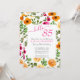 Invitation d'anniversaire florale rose et orange simple aquarelle avec écriture de script élégante.