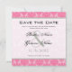 Rose Damask Mariage Enregistrer la Date. Moderne Vintage Deux Tons Pastel Rose avec des Accents Gris Invitation de Mariage Damask. Parfait pour les Thèmes de Mariage Floral Rococo Baroque, Médiéval Renaissance, Mariages Victorien Français ou Thèmes de Mariage à la Ferme Élégants.