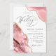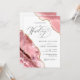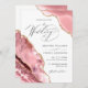 Invitation vos invités mariages dans le style avec cette faire-part de mariage de luxe personnalisée avec une bordure d'agate d'or rose abstrait accentué avec la parties scintillant faux or. Personnalisez tous vos détails mariages dans un élégant script de typographie noire. Meilleurs voeux pour votre mariage et mariage ! Conçu par Susan Coffey.