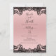 Invitation Rose Pêche Noir Encre Dentelle Élégant Mariage