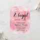 Enfin 21 ans et en âge de boire ! Invitation rose avec '21 ans révolus' sur fond rose clair, facilement personnalisable en changeant le nom, la date, l'heure, le jour, le lieu et la réponse.