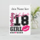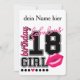 Carte d'invitation personnalisable pour les 18 ans. Style universitaire avec numéro et couleur rose.