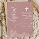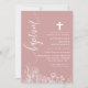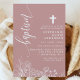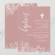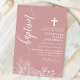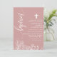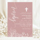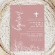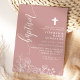 Invitation Rose Poussiéreuse Blanc Floral Élégant Script Bapt