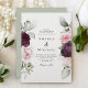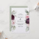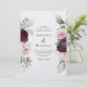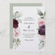 Faites une déclaration avec ce magnifique faire-part de mariage botanique rose d'aquarelle qui comporte des bordures florales de chaque côté du texte élégamment placé. Les couleurs comprennent le rose pâle, le rouge bordeaux profond et le prune mélangés à la verdure éthérée et de minuscules fleurs blanches d'accent. Personnalisez le modèle de texte avec vos informations. Le côté arrière de cette invitation est un vert sage coordonné. D'autres couleurs sont disponibles, ou vous pouvez changer la couleur arrière - plan en blanc ou n'importe quelle couleur de votre choix.